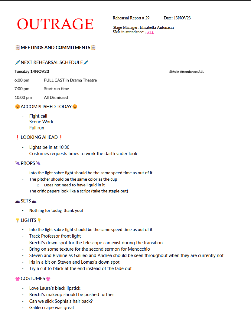 *Only the first page of some Rehearsal Reports are showcased. Please download to view the full file.